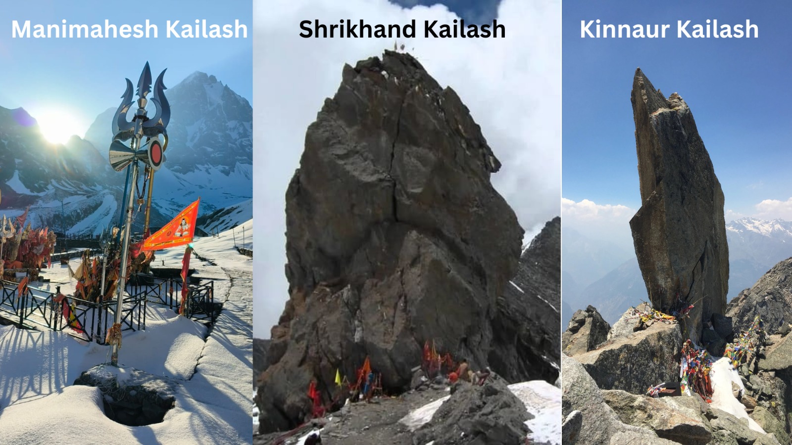 Srikhand, Kinnaur, and Manimahesh are revered pilgrimage destinations in Himachal Pradesh. Srikhand Kailash, with its distinctive peak, is considered sacred by devotees of Lord Shiva. Kinnaur is known for its stunning landscapes and spiritual significance. Manimahesh, dedicated to Lord Shiva, is famous for its high-altitude lake, drawing pilgrims seeking blessings and peace.
